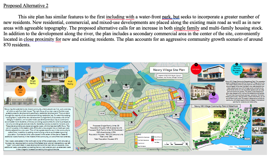 This semester, the CRP 8070 Professional Studio class focused on the historic Newry Mill Village, located just 15 minutes away from Clemson University. Newry is a former textile mill village. The purpose of this project was to document and examine the physical, social, environmental and economic evolution of this quintessential late 19th century ‘company town’: identify challenges and opportunities as it enters the 21st century; develop a vision and set of future spatial and policy scenarios; and identify key actions, programs, policies, and/or projects that would advance community goals and vision looking into the future. This document serves as the final community report, a summary of the tasks undertaken this semester.